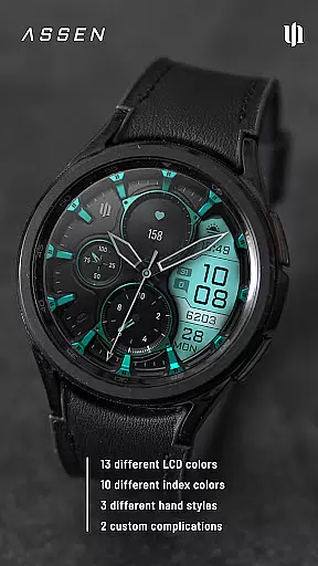 S4U Assen is a premium Wear OS watch face that combines realistic analog design with practical digital elements. The hybrid dial features customizable LCD colors, index markers, and clock hands, allowing users to create a personalized look. With support for 4 custom complications and 3 app shortcuts, it delivers essential information at a glance while providing quick access to favorite widgets.