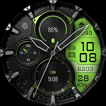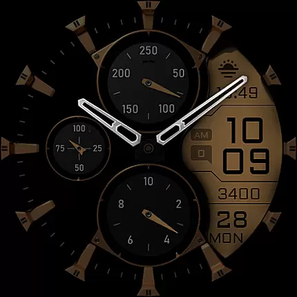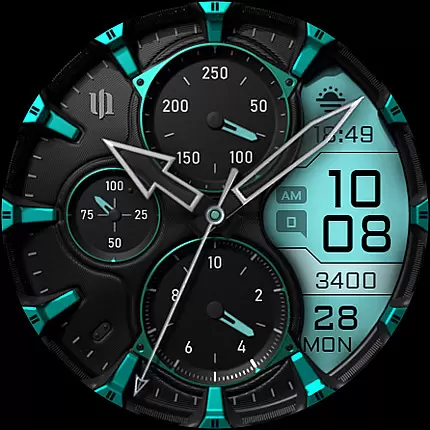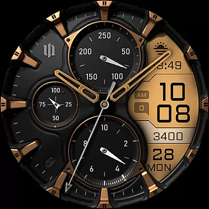 Functionality is enhanced through 4 customizable complications and 3 app shortcuts. These allow users to display relevant data such as steps, heart rate, unread messages, and more. The tap-to-open battery details feature provides quick access to power information, while the comprehensive customization menu enables adjustments through simple swipe gestures.