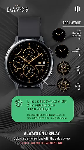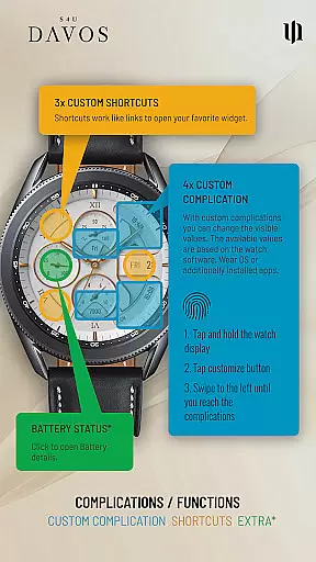 With its elegant design and advanced features, S4U Davos provides an enhanced user experience through personalization and practicality. The watch face supports multiple complications, shortcuts, and customization options, ensuring it meets various user needs while maintaining a classic aesthetic.