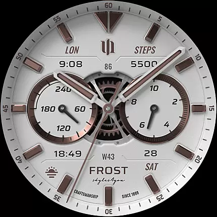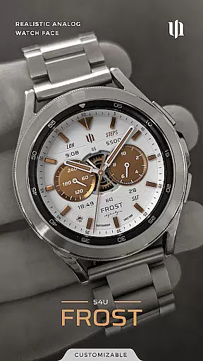 S4U Frost is a premium Wear OS watch face that combines classic analog design with modern smartwatch functionality. Featuring a realistic white analog dial, this watch face offers users both aesthetic appeal and practical utility through its customizable interface.