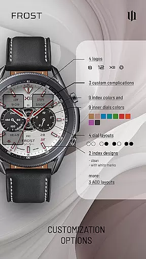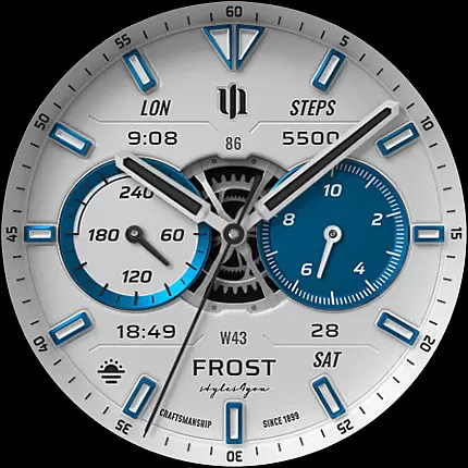 The watch face supports up to 3 custom complications, allowing users to display personalized data such as heart rate, steps, or battery level. With additional features like Always-On Display (AOD) and multiple customization options including color schemes and dial layouts, S4U Frost caters to those seeking both form and function on their smartwatches.