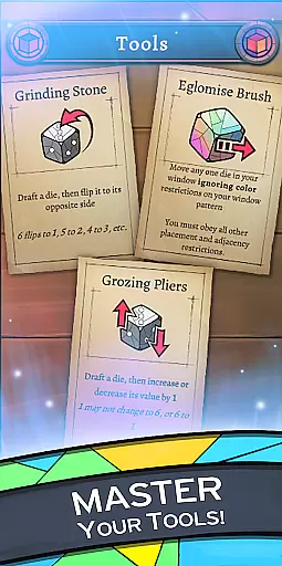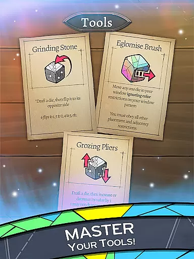 The game includes various artisan tools which provide special abilities to manipulate dice or alter your window's layout. These tools add depth to the gameplay, enabling creative strategies and offering solutions when faced with challenging placements. Additionally, the AI-driven patron cards introduce dynamic objectives, rewarding adaptability and smart decision-making throughout the game.