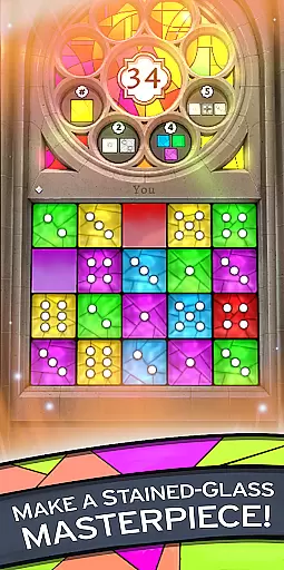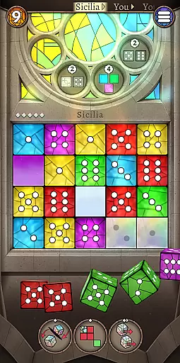 Sagrada is a digital adaptation of the popular dice-drafting board game by Floodgate Games. This casual game invites players to craft stunning stained-glass windows using colorful dice, each representing a piece of glass. The challenge lies in strategically placing these pieces while adhering to restrictions on both color and number values displayed on the dice.