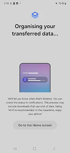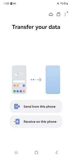 The interface design of Samsung Smart Switch Mobile emphasizes simplicity and user-friendliness. Upon launching the app, users are greeted with clear instructions and intuitive navigation paths that make device setup straightforward.