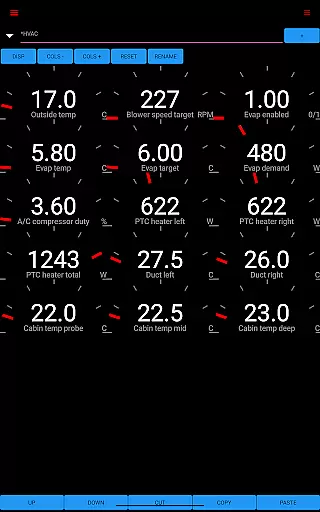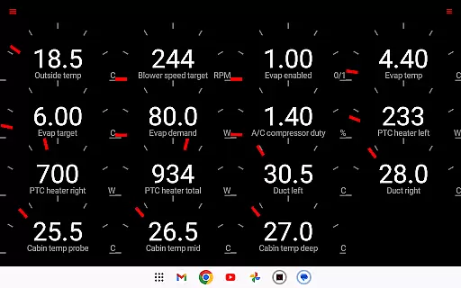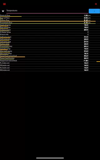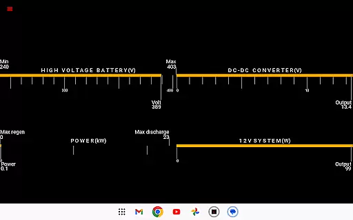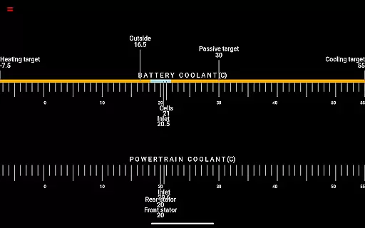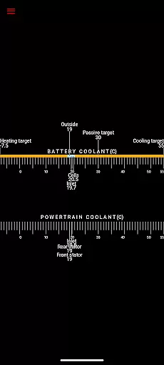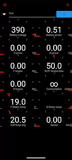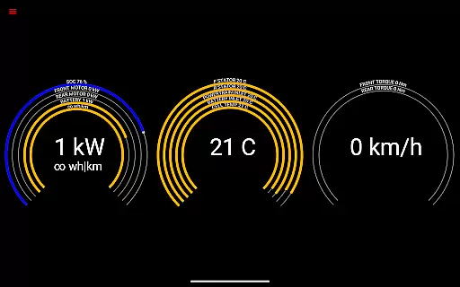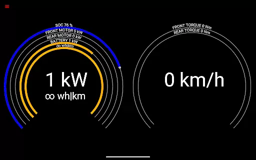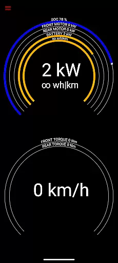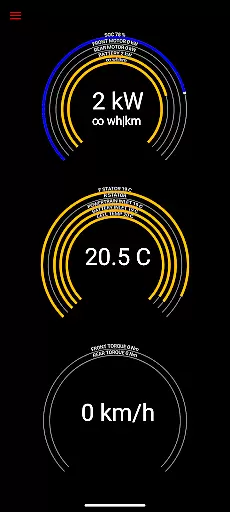The app reads vital statistics such as battery power, voltage, current, and temperatures, along with drive unit details like electric power, torque, horsepower, RPM, and temperatures. This level of detail allows users to understand their vehicle's operational status at any given moment.