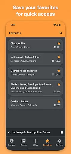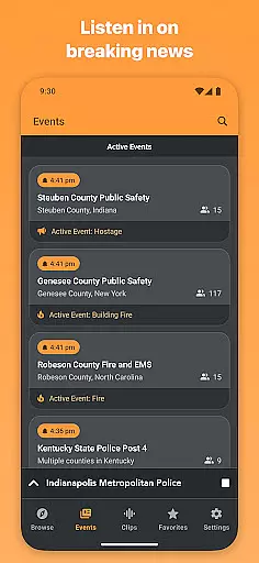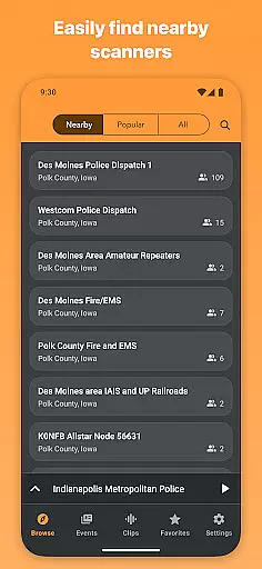 The app's core functionality includes geo-location features that display nearby scanners, customizable notifications for major events, and a favorites system for quick access to frequently listened channels. Scanner Radio also supports widgets and shortcuts for easy access directly from your device's home screen. Whether you're monitoring breaking news, tracking severe weather, or simply exploring different communication streams, this app delivers timely and relevant audio feeds.