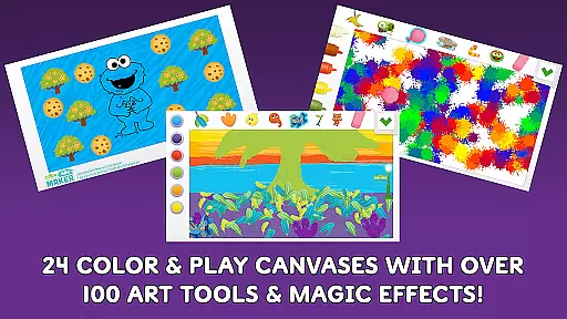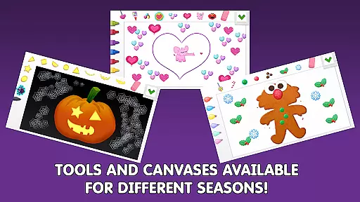 Children can enjoy creating seasonal artwork with regularly updated canvases that reflect different times of the year. The app also includes interactive features such as Elmo and Cookie Monster providing feedback on creations, animated character stickers, and photo decoration options. These elements combine to create an immersive and educational art-making experience.