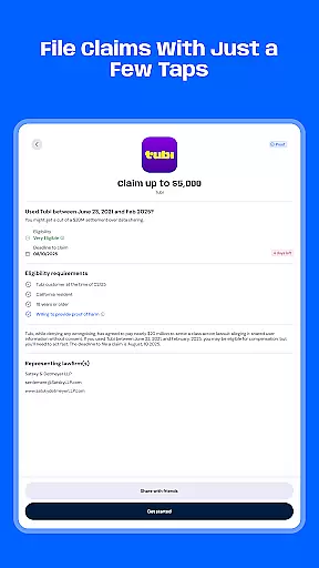 With just a few simple questions, Settlemate matches you with active settlements and lawsuits you're eligible for, streamlining the entire claiming process. There's no requirement for legal advice or dealing with cumbersome paperwork, allowing you to submit your claims within seconds.