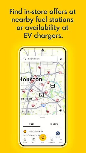 Another significant feature is the ability to locate Shell stations quickly, view in-store offers, and check mobile payment availability. For electric vehicle owners, the app provides access to over 4,000 Shell Recharge EV charging stations across the U.S., allowing users to find chargers, check availability, start/stop charging sessions, and make payments directly within the app.
