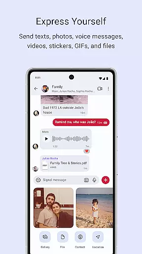 The app supports high-quality media transmission, ensuring that your shared content retains its original quality. Whether you're sending a photo or a document, Signal's strong end-to-end encryption keeps your media private and secure during transmission.