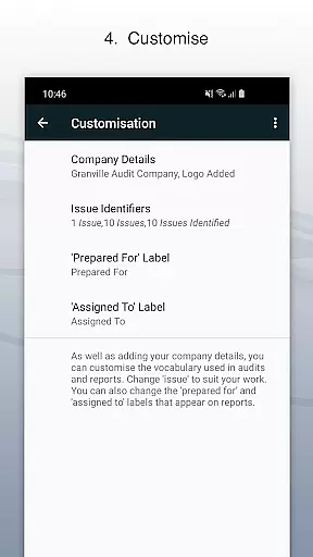 Customization options further enhance synchronization reliability. Users can add personal details such as company name, logo, auditor name, and signature to their reports, ensuring brand consistency across all devices.