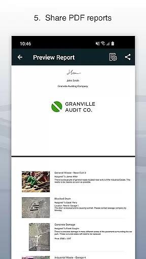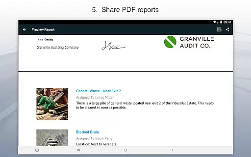The app enables users to share professional audit reports instantly without needing to return to the office. Reports can be shared as PDFs via email, Dropbox, and other platforms, ensuring that all team members have access to the latest data regardless of their location.