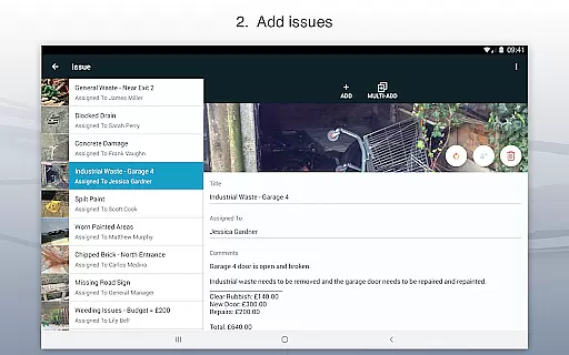 The application allows users to record issues with accompanying photos, assign tasks to specific individuals, and add relevant comments. These features ensure that every step of the auditing process is documented and assigned to the right person, streamlining workflows significantly.