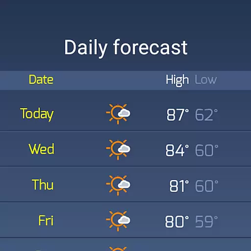 Hourly and daily weather forecast, current condition, temperature, UV and more!