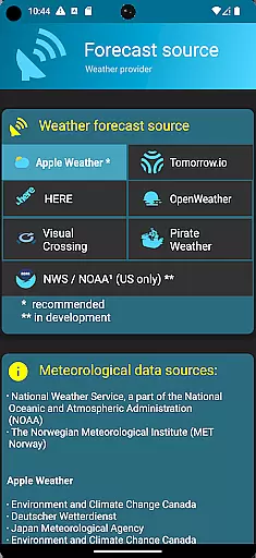 Forecast accuracy and data credibility are crucial for any weather application, and SkyHalo 2 excels in these areas. The app offers users a choice of ten global forecast sources, including Apple Weather, Google Weather, OpenWeather, and Open-Meteo. This diversity ensures that users can select the most reliable source for their location, enhancing both forecast accuracy and data credibility.