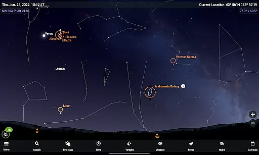 SkySafari 7 Pro stands out with its comprehensive set of features tailored for astronomy enthusiasts. The app provides complete support for the latest Android versions, ensuring compatibility and performance. Its Events Finder dynamically generates listings of moon phases, eclipses, meteor showers, and planetary phenomena, making event discovery effortless.