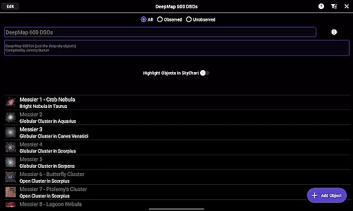 The Observation Tools within the app allow users to log and plan observations, effectively building a personal itinerary of celestial phenomena to explore. These tools support an adaptive learning environment where users can set goals, track progress, and reflect on their observations over time.