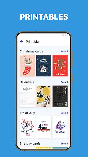 For document management, Smart Printer handles multiple file types including PDFs, DOCs, and XLSX files. The app's multi-image printing option helps reduce paper waste while maintaining print quality. Additionally, the built-in template library offers over 100 free monthly updated designs for various printing projects, enhancing both functionality and creativity.