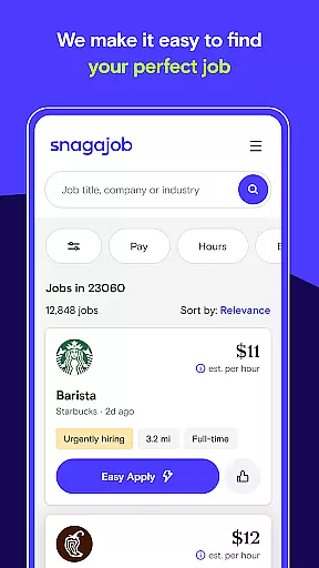 Snagajob is a leading job search application designed specifically for hourly workers seeking part-time or full-time employment opportunities. The app simplifies the job hunting process by offering location-based job searches, personalized job matches, and one-click applications.