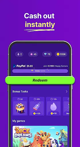 Play casual games to get gift cards and money. More playing, more earning.