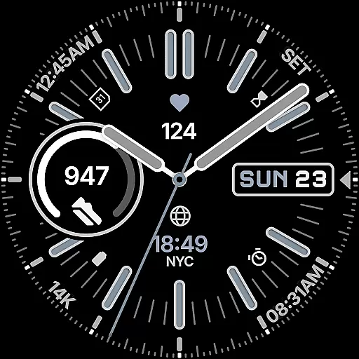 Premium hybrid watch face with many customizations for Wear OS devices.