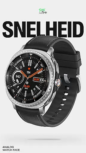 Snelheid Analog Watch Face is a Wear OS watch face that combines motorsport-inspired design with modern smartwatch functionality. Featuring bold indices, dashboard-style typography, and vibrant accents, it delivers both style and utility. The dynamic dial integrates analog timekeeping with digital features, offering seven customizable complications for quick access to essential data like health metrics, weather, and more.