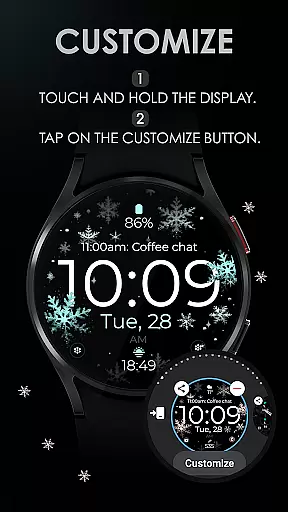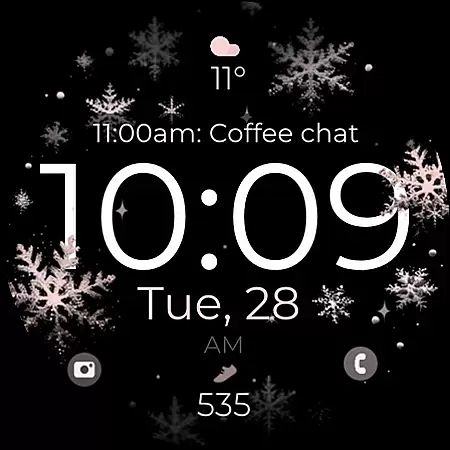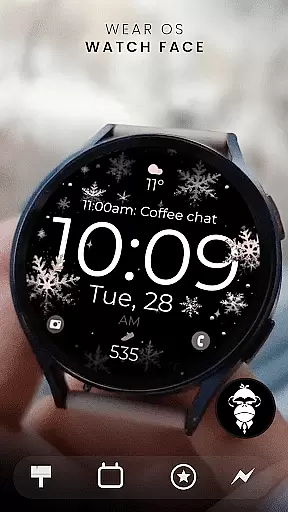 The watch face integrates perfectly with the Wear OS companion app, allowing users to adjust settings such as snowflake colors, complications, and app shortcuts effortlessly. This synchronization provides a unified experience across devices, ensuring that personal preferences are maintained.