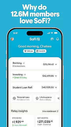 SoFi is a comprehensive mobile banking and investing application that simplifies financial management. The app offers seamless money transfers, digital check deposits, online bill payments, and advanced budgeting tools. Users can benefit from high-yield savings accounts and commission-free stock trading (other fees may apply). SoFi serves over 12.6 million members who use the platform for banking, investing, and saving.