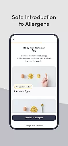 The app's key feature is its extensive First Foods® Database containing 400+ food entries. Each entry includes detailed preparation instructions, choking hazard information, allergen warnings, and instructional videos. Parents can track their baby's food journey using the digital food log and access personalized meal plans that gradually introduce new textures and flavors while managing common allergens.