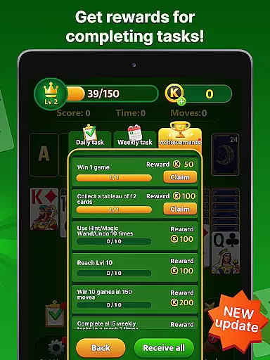 This app stands out with its comprehensive feature set designed to enhance the classic solitaire experience. It includes beautiful graphics and animations that evoke nostalgia while providing a modern touch. The Daily Solitaire Challenge rewards consistent play by offering incentives like gems and trophies for consecutive participation.