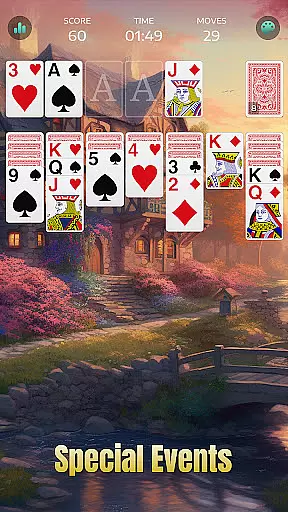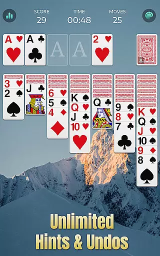 The core function revolves around solving Solitaire puzzles by organizing cards into foundations based on suits. With a single deck of 52 cards, players stack cards from Aces to Kings in ascending order while also arranging them in descending sequences across columns. The game provides various modes including the challenging Solitaire 3 Draw Mode and features like Daily Challenges and unlimited hints, ensuring an engaging experience for all skill levels.
