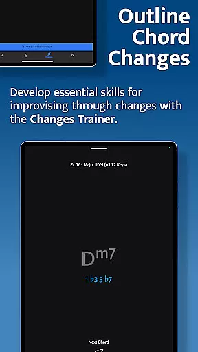 The Changes Trainer revolutionizes how musicians approach chord progressions by teaching them to outline changes using single-note lines. With over 100 common progressions and 50 intervallic function levels, it provides comprehensive practice material. The Scale Trainer goes beyond traditional box patterns, offering more than 50 scales and modes with advanced sequence options.