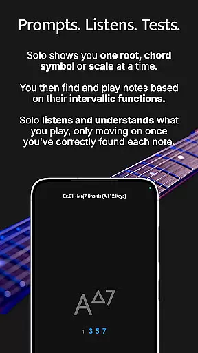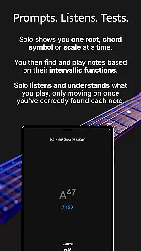 Solo is an innovative music practice application designed to help guitarists and bassists master fretboard visualization. Created by renowned guitarists Tom Quayle and David Beebee, this app provides a structured approach to learning note names, interval shapes, chord changes, and scales through interactive exercises.