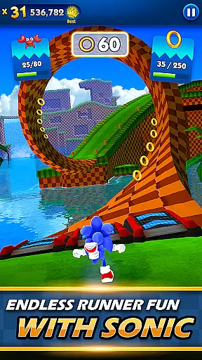 The game offers a twist on traditional endless runner mechanics with the inclusion of familiar zones like Green Hill Zone, known for its loop de loops and corkscrews. Players can relive the nostalgia of classic Sonic levels while enjoying the fast-paced action that defined SEGA's original arcade hits.