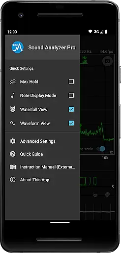 The application implements several innovative features that enhance usability and precision. Its touch-based display range adjustment provides intuitive control over analysis parameters, while the switchable frequency axis scale accommodates different analysis requirements. The inclusion of a max hold function ensures critical peaks aren't missed during monitoring sessions. Furthermore, the unique note display mode translates technical measurements into musician-friendly pitch information, showing notes from A to G♯ along with cent accuracy.