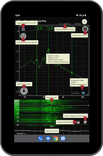 This application proves particularly useful in studio settings or during live performances where real-time audio monitoring is crucial. The ability to capture screenshots with timers and analyze high-frequency spectra up to 96 kHz (on supported devices) demonstrates its versatility across various audio analysis scenarios.