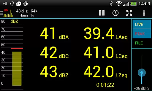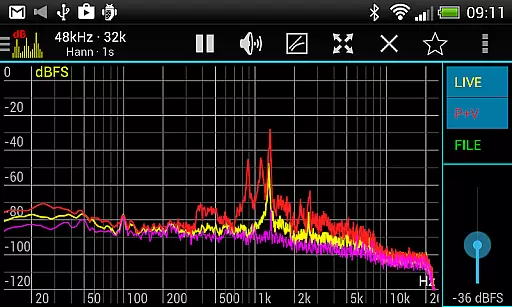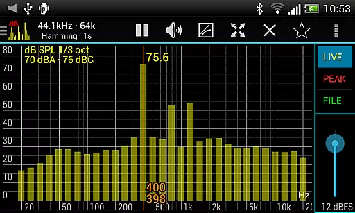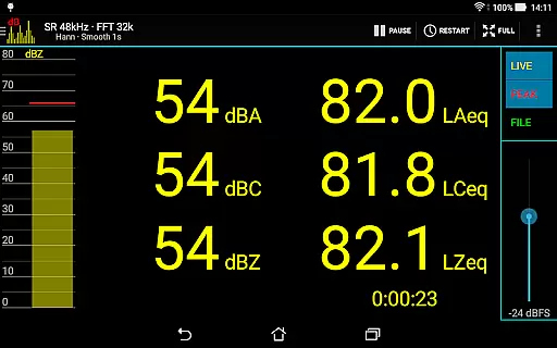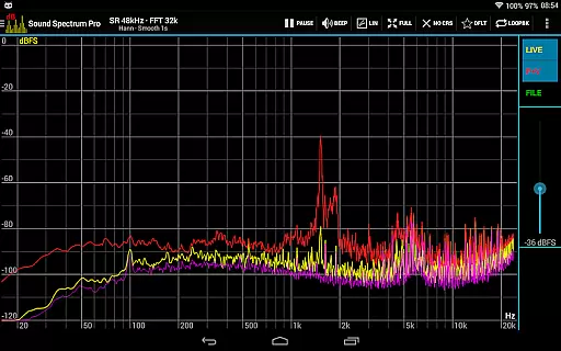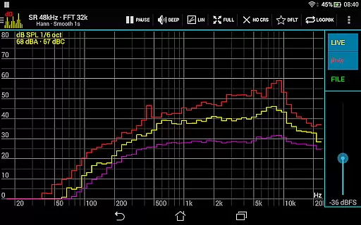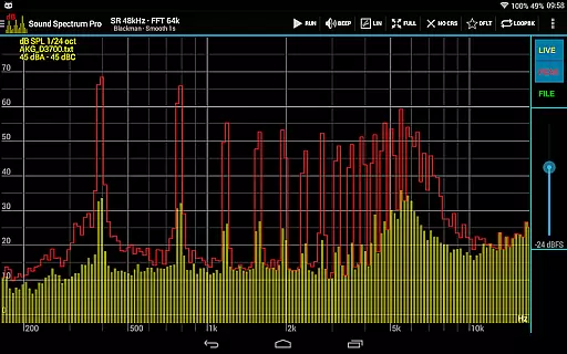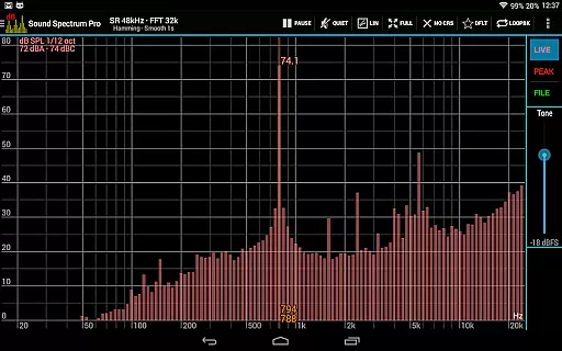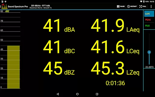 Sound Spectrum Pro boasts an impressive array of features that cater to the most demanding audio analysis needs. The app includes both FFT (amplitude) and RTA functionalities, allowing users to analyze audio signals across different frequency bands with exceptional accuracy. Its support for various octave measurements and sound pressure levels (dBA, dBC, dBZ) makes it suitable for professional-grade acoustic assessments.