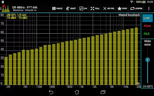Additional functionalities include equivalent continuous sound level measurements (LAeq, LCeq, LZeq), impulse response analysis, and RT60 measurement for reverberation time. The inclusion of signal generators for tones, white noise, pink noise, and more, along with loopback mode and file load/save capabilities, ensures that Sound Spectrum Pro is a versatile tool for all audio professionals. Sharing and printing of screenshots further enhance its practicality in professional settings.