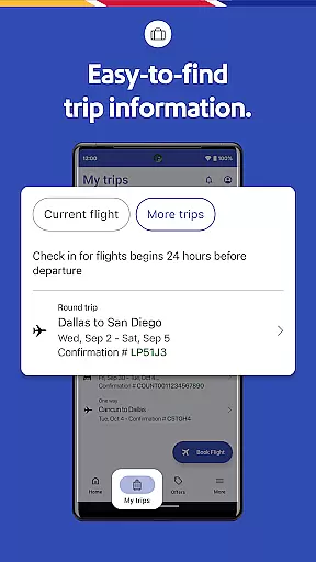 The Southwest Airlines app offers a variety of robust features designed to enhance your travel experience. Users can search, book, and manage flights effortlessly while accessing detailed trip information such as gate details and boarding positions via the 'My Trips' section. The integration of Rapid Rewards® allows users to earn and redeem points on bookings, adding value to every trip.