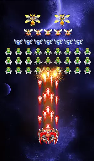 The game employs intuitive touch-based mechanics where sliding on the screen allows for smooth maneuvering of your spaceship. This direct form of interaction ensures that player inputs are accurately translated into in-game actions without delay.