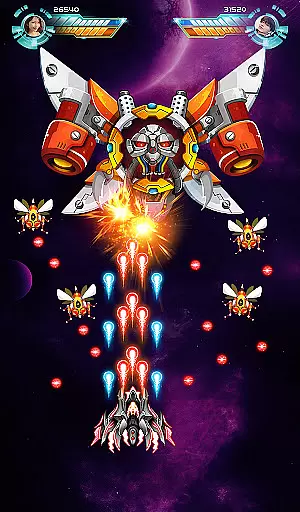 Space Shooter - Galaxy Attack distinguishes itself through several key features that enhance the traditional space shooter genre. The game's Perfect Shoot 'em Up mechanic allows players to select and customize their fighter ships, creating personalized space teams for battle. This customization extends to ship upgrades and evolutions using in-game currency.