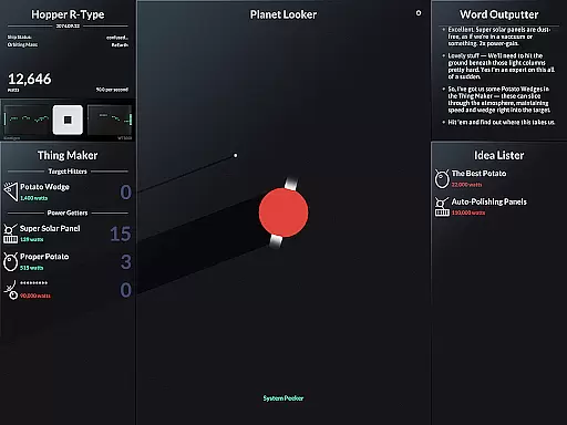 In SPACEPLAN, the economic system is cleverly embedded within its gameplay mechanics. The core of the game revolves around resource management where players must strategically use manual clicks and time to generate resources. This creates a dynamic feedback loop that directly impacts how you unlock and deploy potato-based devices.