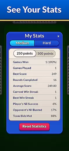 Spades - Classic Cards stands out with its variety of features designed to enhance gameplay. Choose from multiple difficulty levels to match your skill set, ensuring a challenging yet fair experience. The game includes classic modes as well as innovative twists to keep the gameplay fresh and exciting.