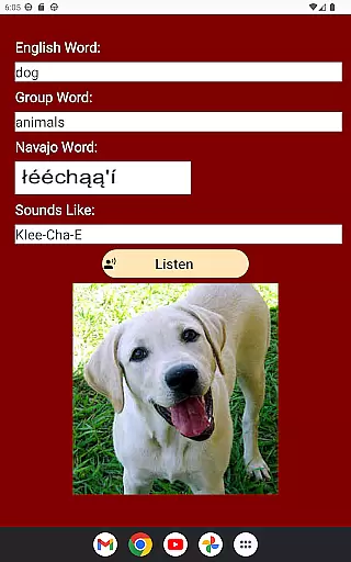 The app's intuitive search features allow users to find words by English or group names. Each entry includes visual and audio aids - images to create mental associations and sound files to hear proper pronunciation. Developed by a Navajo Tribe member, this authentic resource provides accurate, commonly-used words straight from the Navajo reservation.
