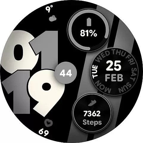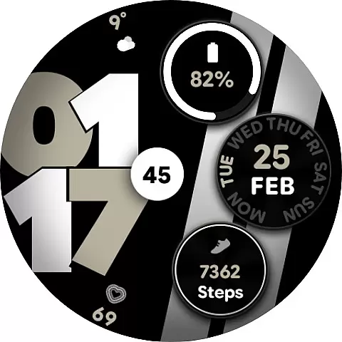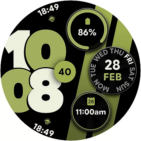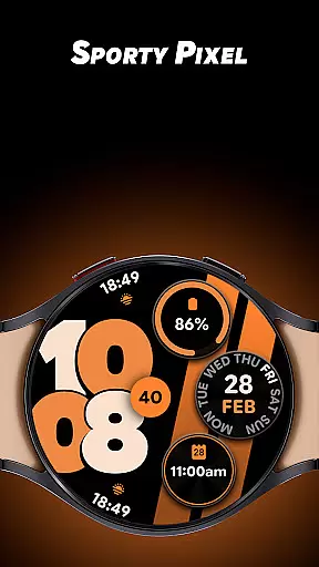 Additional features include the ability to customize the seconds hand style and switch between 12/24-hour time formats. The battery-friendly Always-On Display ensures that key information remains accessible without compromising battery life. These thoughtful design elements make Sporty Pixel both versatile and practical for everyday use.
