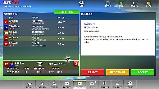 Players can also manage various aspects such as transfer negotiations and player training, adding to the authenticity of managing a soccer team. These features ensure that users not only engage in matches but also in the broader strategic management of their teams.