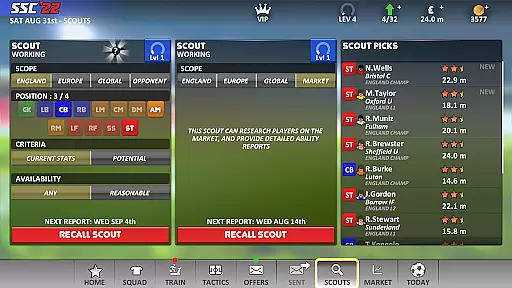 The game offers an engaging Manager Mode where you handle transfers, player training, and scouting. New features for 2022 include updated club databases, a side-view camera mode, match engine refinements, and new formations like 3-4-3 and 4-2-3-1. Whether playing solo or competing locally with friends using touch and game controllers, SSC '22 delivers an authentic and enjoyable soccer experience.