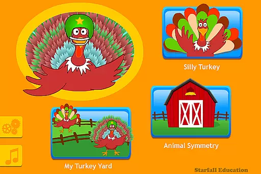 In addition to turkey-themed activities, the app includes symmetrical puzzles that teach children the names of other farm animals. This feature promotes critical thinking and problem-solving skills while expanding vocabulary. The app's accessibility options ensure that children with special needs can also benefit from its content. By combining these diverse features, Starfall Turkey creates a comprehensive educational platform that supports varied learning styles and needs.