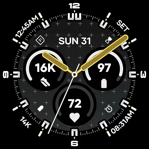 Users can choose from 30 curated color schemes that balance expressive contrast with functional readability. Multiple bezel and hand styles provide further customization options, catering to individual preferences. Additionally, two subtle geometric background patterns enhance visual identity, while three distinct Always-on Display modes offer flexibility in balancing visibility and power consumption. Engineered with the latest Watch Face File format, Starlyn delivers efficient performance and reliable system integration.