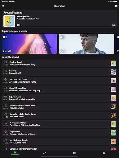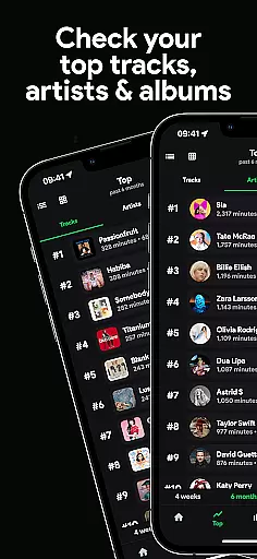 The app provides detailed insights into your most listened songs and artists across various periods. With such a vast array of content available, you can explore new music or revisit old favorites while being assured of its legitimacy. The comprehensive nature of this library means that whether you're tracking your personal journey through music or comparing stats with friends, there's always something new to discover.